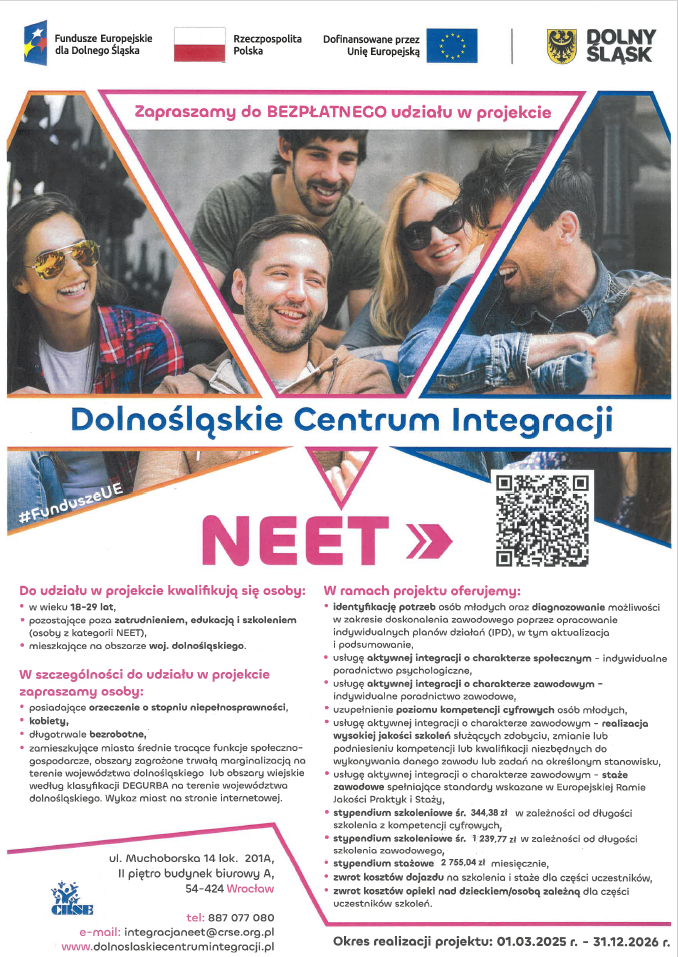 Bezpłatna oferta udziału w projekcie „Dolnośląskie Centrum Integracji NEET” - Powiatowy Urząd Pracy w Wałbrzychu
